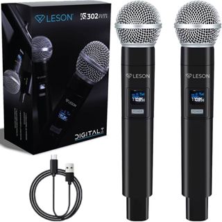 Leson Microfone Duplo Digital 2.4GHz Wireless Recarregável Igreja Evento Karaokê