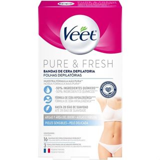 Cera Fria Depilatória Veet Pure & Fresh 16 Folhas | Axilas e Virilhas Pele Delicada Remoção Suave