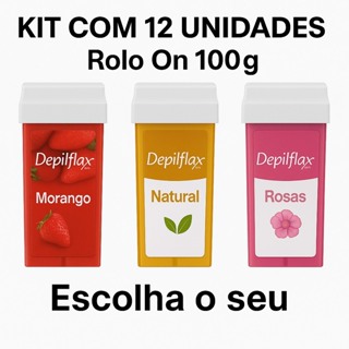 Kit C/12 Refil Cera Depilatória Roll-on Depilflax Morango,Rosa e Natural