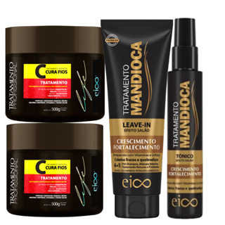 Eico Cura Fios Máscara Nutrição 1Kg Leave-in Protetor Térmico Mandioca e Tônico Capilar Crescimento 120ml