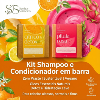 Kit Shampoo e Condicionador Natural Barra Sólido Cabelos Oleosos - Controle Oleosidade Definição Capilar cítrico pitaia