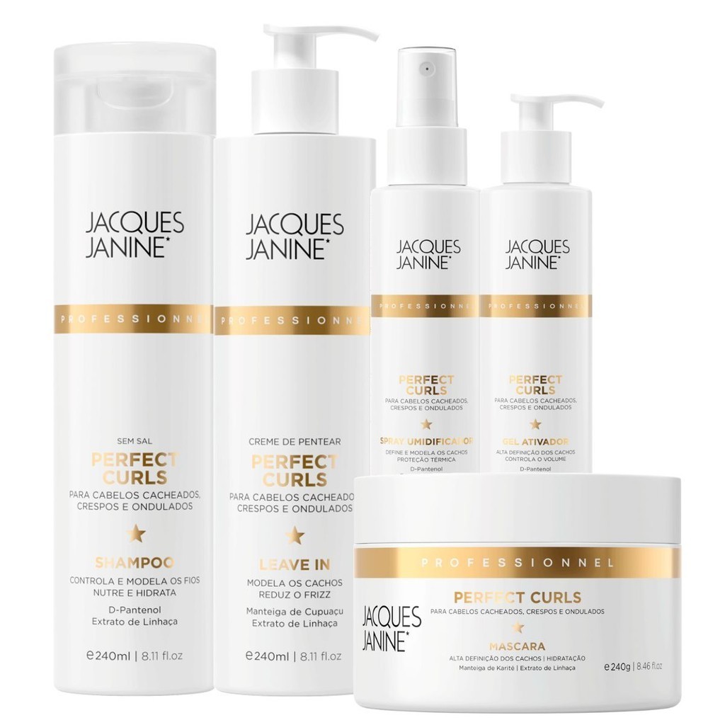 Kit Jacques Janine Power Perfect Curls Shampoo 240ml Máscara 240g Gel 120ml Spray Finalizador 120ml em Oferta na Shopee Shopee