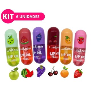 Kit Lip Oil Gloss Hidratante Labial Magic Frutinhas Lua e Neve 6 Unidades
