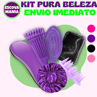 Kit Pura Beleza_ 6 ÍTENS - Escova Magica + Escova Aspiral + Escova Polvo + Escova Raquete + Touca De Cetim Massageadora
