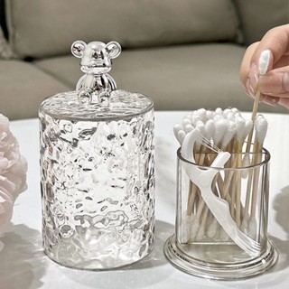 Porta Cotonete Palito Em Acrílico Cristal Com Tampa Urso Ou Coelho Elásticos Multiuso Universal Luxo
