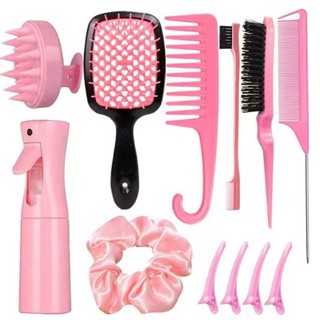 Kit 12 Escova Para Cabelos Cacheados Natural Curvo Rattail Pente Conjunto Ferramentas De Salão De Cabeleireiro