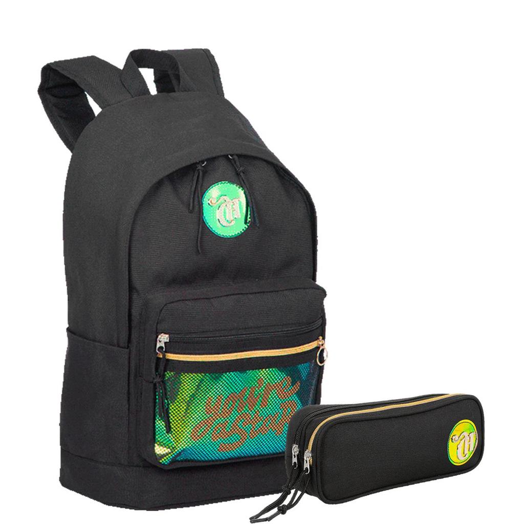 Kit Mochila Grande e Estojo 2 Compartimentos Capricho Candy - Preto