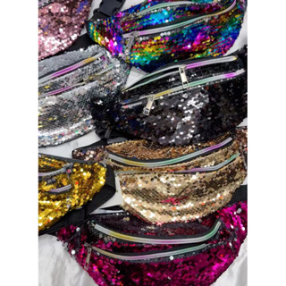 Pochete de Paetê Lantejoulas Bolsa com Divisaria Brilho Carnaval Bloco Show Festival