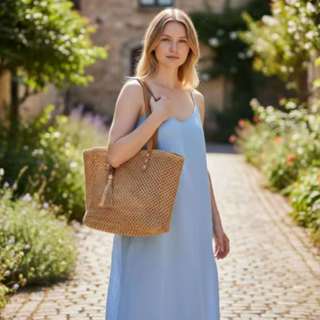 Xaviera Bolsa Feminina de Palha Trançada com Alça Longa e Penduricalho – Estilo Praia e Casual