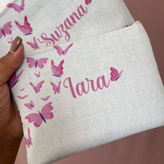 PRODUÇÃO 1 DIA ÚTIL + FRETE - Necessaire Borboletas Rosa Personalizada com nome