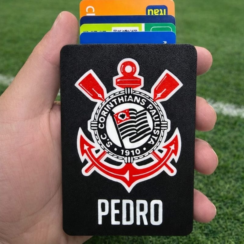 Carteira Slim Corinthians Timão personalizada com nome, ejetor de cartões, porta CNH, torcedor fiel.