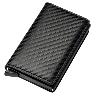 Carteira Porta Cartaõ Rfid Antifurto Fibra de Carbono com botão ejetor de Cartões