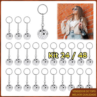 24/48 pçs Chaveiro bola de discoteca espelhada, decoração bola de discoteca, lembrança para festas dos anos 70-80, Prata