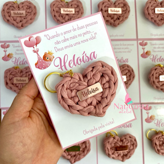 kit chaveiro coração fio de malha com tag e embalagem