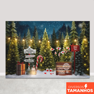 Painel Fundo Fotográfico Natal Cenário Floresta Pinheiros Natalinos Em Tecido Sublimado - FNT-792