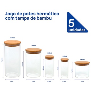 Kit 5 Potes Herméticos Redondo Tampa Bambu Mei - Mimo Style