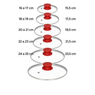 TAMPA DE VIDRO TEMPERADO Nª 10 12 14 16 18 20 22 24 26 28 30CM -PARA JOGO DE PANELA / FRIGIDEIRA- POMEL VERMELHO