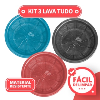 Kit com 3 Escorredores Lava Tudo de Plástico para Arroz, Massas, Frutas e Legumes