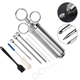 Seringa Culinária Injetora p/ Carne Frango, Aço Inox, Agulha Inclusa, Completa c/ Acessórios