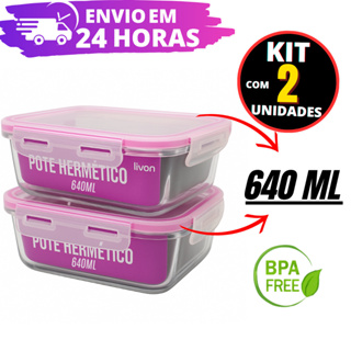 Conjunto Potes Vidro Hermético Mantimentos Marmita 640ml