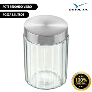 Pote Redondo 1,1 Litros Vidro Canelado Tampa Inox Rosca Invicta