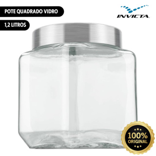 Kit c/6 Unid Pote Quadrado 1,2 Litros Vidro Liso Tampa Inox Rosca Invicta