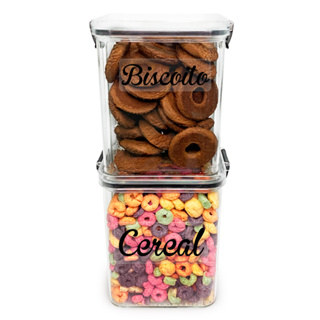 Kit de Potes para Cozinha Dispensa Plástico Tampa com Trava Herméticos 5 Peças + Etiqueta