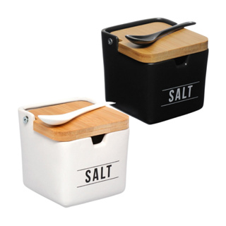 Saleiro de Porcelana com Colher + Tampa de Bambu Salt Manhattan Hauskraft 270ml