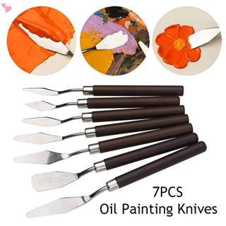 7Pcs Conjunto Faca Para Pintura A Óleo De Arte Em Aço Inoxidável Ferramentas De Desenho De Espátula Artista Bolos