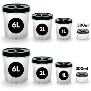 Kit 8 Potes Mantimento Redondo 2 De 6L + 2 de 2L + 2 De 1L + 2 de 300ml Transparente Tampa Rosca