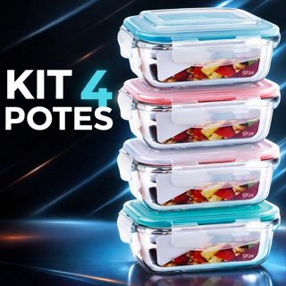 Kit 4 Potes de 640ml Vidro Hermético Retangular Marmita Microondas Freezer Forno em Oferta na Shopee Shopee