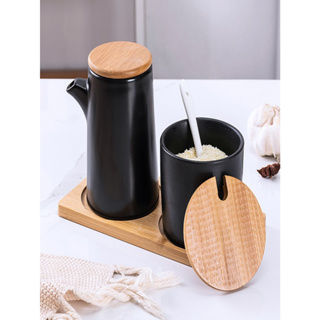 Kit Com 2 Peças Porta Mantemento em Cerâmica  com bandeja colher de bambu em Oferta na Shopee Shopee