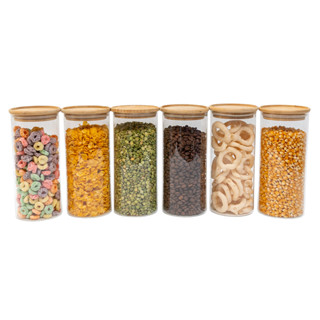 Kit 6 Potes de Vidro Empilhável Hermético Tampa Bambu 800ml Oikos em Oferta na Shopee Shopee