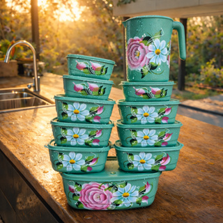 Jogo de Potes 11 Peças com JARRA Decorado, kit 11 Potes Tigelas Condimento, Mantimento para Cozinha em Oferta na Shopee Shopee