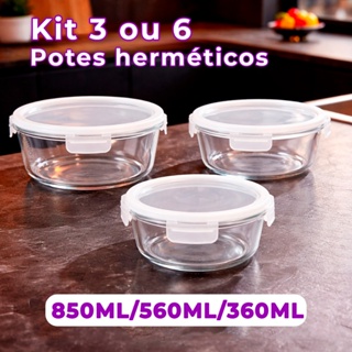 Conjunto 3 ou 6 Potes de Vidro Herméticos Redondo 850ML 560ML 360ML Kit Microondas e Freezer em Oferta na Shopee Shopee