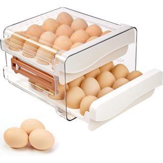 Gaveteiro de -ovos para geladeira, recipiente de armazenamento de ovos com grade /gaveta de 2 camadas