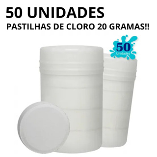 KIT PASTILHA DE CLORO COM PACOTE 50 UNIDADES ENVIO IMEDIATO PISCINA AÇUDES CAIXA DE AGUA em Oferta na Shopee Shopee