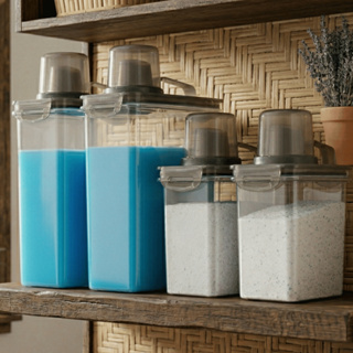 Kit 6 Potes Hermético para Lavanderia Sabão Amaciante 1,9L Dispenser Organizadores c/ Bico Dosador em Oferta na Shopee Shopee