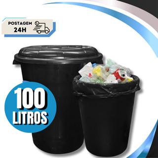Kit 02 Cesto de Lixo Lixeira Cestão 100 Litros Com Tampa Preto Reforçado em Oferta na Shopee Shopee
