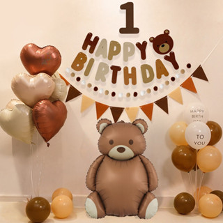28 Pçs Conjunto Completo Urso Marrom Cáqui Balão Suporte Banner Bandeira De Feltro Para Tema Decorações De Festa De Aniv