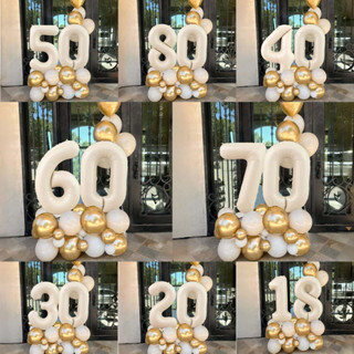 Conjunto De Balões Com Suporte De Número Dourado Creme , 34 Peças Para 18 50 60 70o Adulto , Suprimentos De Decoração De
