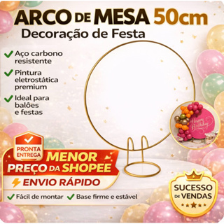Mini Arco de Mesa Redondo em Ferro Dourado para Decoração de Festa e Pegue e Monte