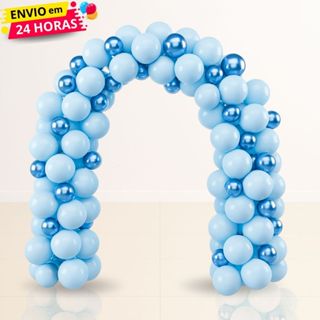 Kit 75 Balões Latex e Cromado - Azul Claro e Azul Cromado Decoração Aniversário Festas e Eventos