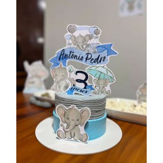 Topo de Bolo Tema Elefantinho Baby Aquarelado