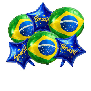 Kit C/5/6/10 Balão Copa Metalizado/Bandeira Brasil 45Cm
