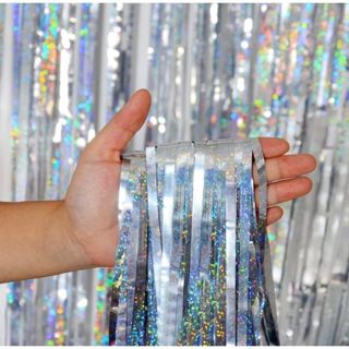 Cortina Metalizada Holográfico 2x1m P/ Decoração De Festa 1/2/4un