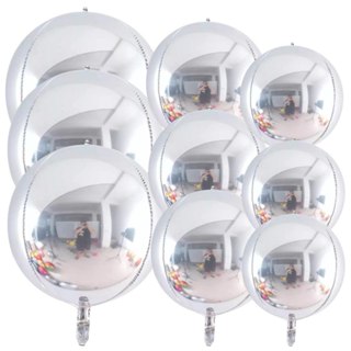 9 Balão Metalizado Bola Prata Globo 4D Festa Decoração Enfeites - 18/22/32 Polegadas /3 Cada