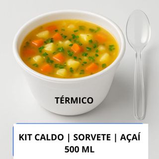 Kit Pote Isopor 500 ml + Colher De Refeição - Cumbuca Térmica para Sopa Caldo Açaí Sobremesa