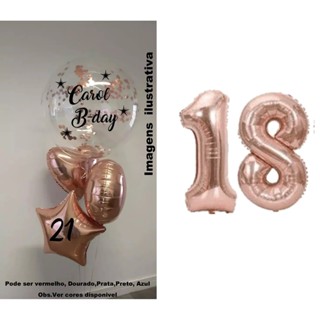 kit com 19 Balões e Balão Bubble 24" polegadas com nome e idade