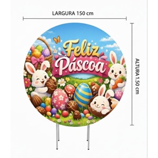 Capa Painel Redondo Fundo fotografico 1,50m x1,50m Páscoa Coelho
